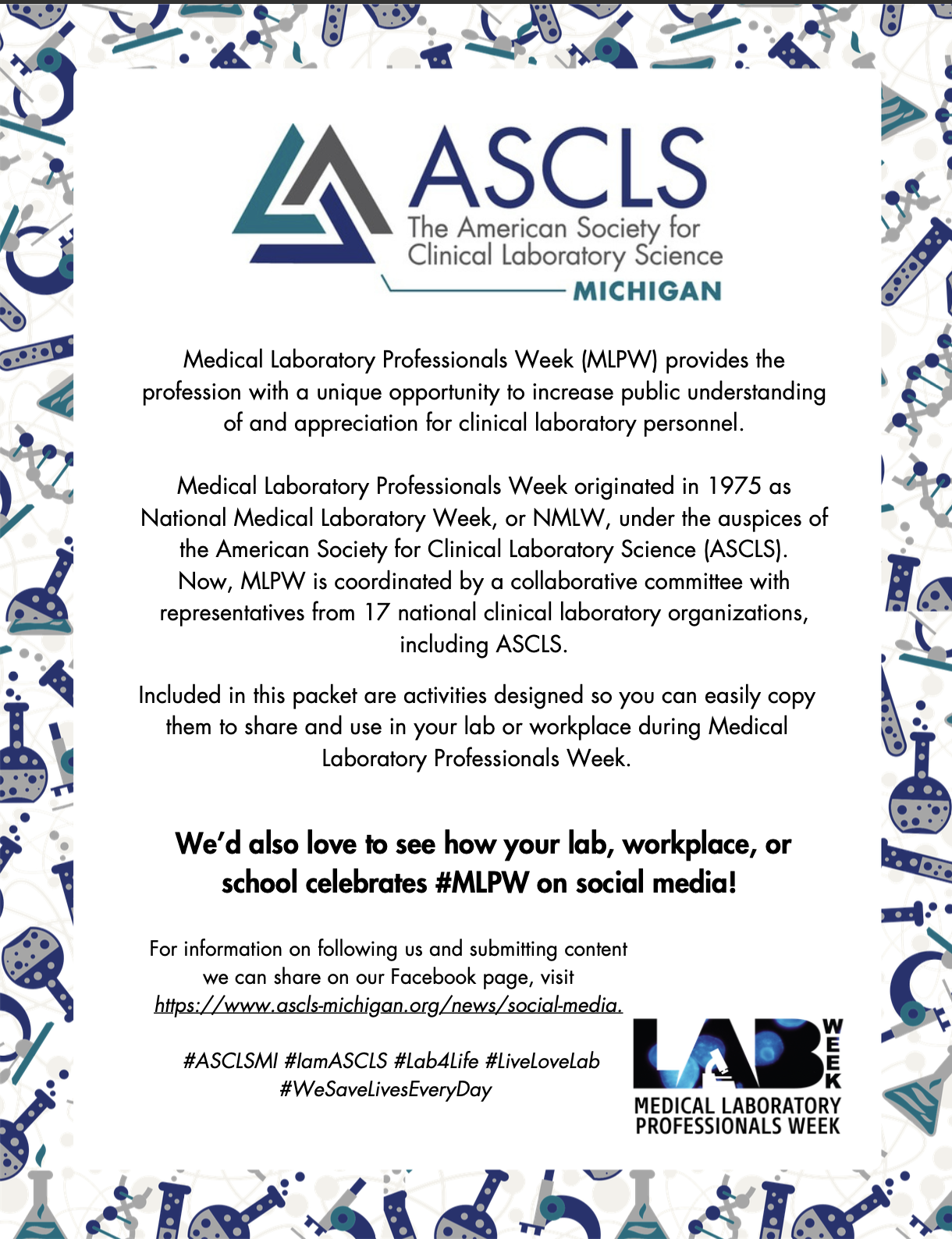 - Social Media Spotlights: Share your team photos and stories using hashtags like #ASCLSMI #MILABWEEK #IamASCLS
